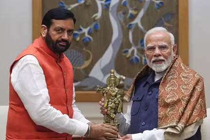 नयी दिल्ली. हरियाणा विधानसभा चुनाव में शानदार जीत के बाद राज्य में भारतीय जनता पार्टी (भाजपा) की सरकार के प्रमुख के रूप में अपने शपथ ग्रहण से पहले मुख्यमंत्री नायब सिंह सैनी ने बुधवार को यहां प्रधानमंत्री नरेन्द्र मोदी से मुलाकात की. इस दौरान प्रधानमंत्री मोदी ने सैनी को भाजपा की ‘ऐतिहासिक’ जीत के लिए बधाई दी और विश्वास जताया कि विकसित भारत के संकल्प में हरियाणा की भूमिका और महत्वपूर्ण होने जा रही है.