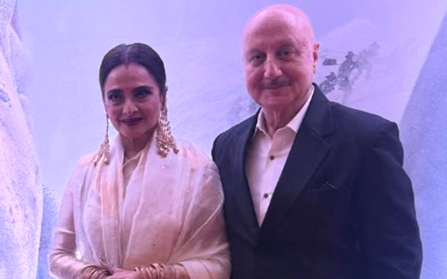 पहली तस्वीर में दोनों कलाकार एक साथ नजर आ रहे हैं। तस्वीर में रेखा हल्के रंग की साड़ी के साथ आकर्षक बालियां पहने नजर आ रही हैं, वहीं अनुपम पेशेवर कपड़े पहने दिखाई दिए। अगली स्लाइड में अनुपम की एकल तस्वीर थी। उन्होंने इन तस्वीरों के कैप्शन में लिखा,”फिल्म ‘120 बहादुर’ के प्रीमियर पर रेखा जी से मिलकर खुशी हुई।