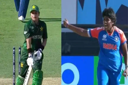 दुबई. भारत की तेज गेंदबाज अरुंधति रेड्डी को यहां महिला टी20 विश्व कप मैच के दौरान पाकिस्तान की निदा डार को आउट करने के बाद आक्रामक भाव भंगिमा दिखाने पर सोमवार को फटकार लगाई गई. अरुंधति ने रविवार को पाकिस्तान पर भारत की छह विकेट की जीत में तीन विकेट लिये थे. पाकिस्तान की पारी के 20वें ओवर में डार को आउट करने के बाद वह भावनाओं पर काबू नहीं रख सकी और उन्होंने पवेलियन की ओर जाने का इशारा किया.