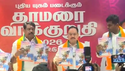 तमिलनाडु में इसी महीने होने वाले विधानसभा चुनाव को लेकर जहां एक ओर सियासत में जबरदस्त गर्माहट देखने को मिल रही है। वहीं दूसरी ओर अब राजनीतिक पार्टियों ने अपनी-अपनी तैयारियां भी और तेज कर दी है। इसी क्रम में भाजपा ने चेन्नई में आगामी चुनाव के लिए अपना घोषणापत्र जारी कर दिया है। इस मौके पर केंद्रीय मंत्री जेपी नड्डा, तमिलनाडु भाजपा अध्यक्ष नैनार नागेंद्रन, भाजपा नेता के अन्नामलाई और तमिलिसाई सुंदरराजन मौजूद रहे।