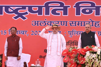 गृह मंत्री अमित शाह ने राष्ट्रपति निशान अलंकरण समारोह में छत्तीसगढ़ पुलिस को बधाई देते हुए कहा कि राष्ट्रपति का पुलिस कलर्स अवार्ड केवल एक सम्मान नहीं है, यह सेवा और कर्तव्य का प्रतीक है. छत्तीसगढ़ पुलिस ने नक्सलवाद, संगठित अपराध और मादक पदार्थों के खिलाफ लड़ाई में जो साहस और प्रतिबद्धता दिखाई है, वह अभूतपूर्व है. छत्तीसगढ़ पुलिस देश के सर्वश्रेष्ठ और बहादुर पुलिस बलों में से एक बनकर उभरा है. उन्होंने कहा कि केंद्र और राज्य सरकार छत्तीसगढ़ और देश को नक्सलमुक्त बनाने के लिए पूरी तरह प्रतिबद्ध है. 31 मार्च 2026 तक छत्तीसगढ़ और देश से नक्सलवाद का पूर्णतः खात्मा हो जाएगा. शाह ने छत्तीसगढ़ पुलिस की तारीफ करते हुए कहा कि इसने न केवल कानून और व्यवस्था को बनाए रखा है, बल्कि जनता के विश्वास को भी मजबूत किया है. उन्होंने उम्मीद जताई कि राष्ट्रपति का पुलिस कलर्स अवार्ड पुलिस बल के लिए प्रेरणा का स्रोत बनेगा, उनका हौसला और मनोबल बढ़ाएगा.