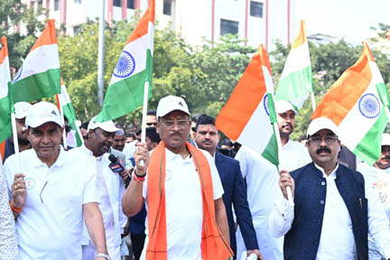 रायपुर. मुख्यमंत्री विष्णुदेव साय आज प्रातः संविधान दिवस पदयात्रा कार्यक्रम में शामिल हुए. संविधान दिवस पदयात्रा पंडित जवाहर लाल नेहरू स्मृति चिकित्सा महाविद्यालय सभागृह से प्रारंभ होकर अंबेडकर चौक पर समाप्त हुई. मुख्यमंत्री ने डॉ. भीमराव अंबेडकर की प्रतिमा पर माल्यार्पण कर उन्हें नमन किया. इस पदयात्रा में उप मुख्यमंत्री अरूण साव, खेल एवं युवा कल्याण मंत्री टंकराम वर्मा, वन मंत्री केदार कश्यप, खाद्य मंत्री दयालदास बघेल, पूर्व विधानसभा अध्यक्ष धरमलाल कौशिक, विधायकगण इंद्र कुमार साहू, गुरु खुशवंत साहेब, अनुज शर्मा, महिला आयोग की सदस्य लक्ष्मी वर्मा और युवा आयोग के अध्यक्ष विश्वजीत तोमर शामिल थे.