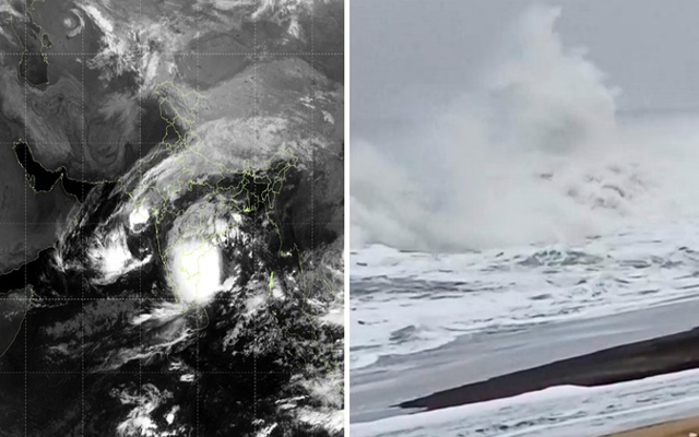 आंध्र प्रदेश के काकीनाडा में चक्रवाती तूफान की आहट के प्रभाव से भारी बारिश और तूफान की हालत है। एनडीआरएफ टीम प्रभावित इलाकों का दौरा कर रही है और लोगों को सुरक्षित स्थानों पर ले जाया जा रहा है।
