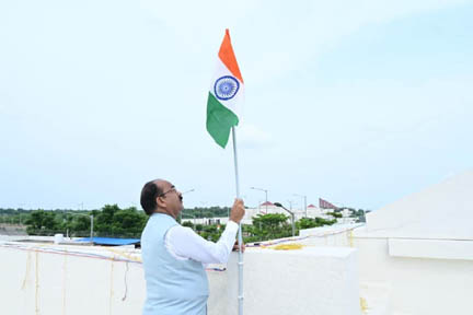 रायपुर. उप मुख्यमंत्री अरुण साव ने आज प्रधानमंत्री नरेन्द्र मोदी के आह्वान पर देशभर में चल रहे ‘हर घर तिरंगा’ अभियान से जुड़ते हुए नवा रायपुर स्थित अपने शासकीय निवास पर तिरंगा लगाया. उन्होंने इस मौके पर कहा कि तिरंगा केवल हमारे देश का ध्वज नहीं, बल्कि 140 करोड़ भारतीयों की एकता, अदम्य साहस और अमर बलिदान का प्रतीक है.