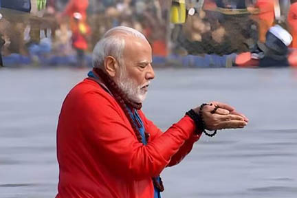 मुख्यमंत्री योगी आदित्यनाथ ने भी ‘एक्स’ पर पोस्ट कर कहा, ”भारत की एकता के महायज्ञ महाकुंभ 2025, प्रयागराज में आज आदरणीय प्रधानमंत्री नरेन्द्र मोदी जी ने पवित्र त्रिवेणी संगम में पावन स्नान कर मां गंगा, मां यमुना, मां सरस्वती का शुभाशीष प्राप्त किया. हर हर गंगे.” उत्तर प्रदेश सरकार द्वारा जारी बयान के मुताबिक, ”प्रधानमंत्री नरेन्द्र मोदी सुबह प्रयागराज हवाई अड्डे पहुंचे, जहां से वह ‘एमआई 17’ हेलीकॉप्टर में सवार होकर डीपीएस हेलीपैड उतरे. यहां पर मुख्यमंत्री योगी आदित्यनाथ ने उनका स्वागत और अभिनंदन किया. यहां से प्रधानमंत्री अरैल घाट पहुंचे, जहां से विशेष नाव पर सवार होकर उन्होंने त्रिवेणी संगम का रुख किया.” इसमें कहा गया कि नाव पर उनके साथ मुख्यमंत्री योगी आदित्यनाथ भी मौजूद रहे जिन्होंने इस दौरान उन्हें महाकुंभ में की गई व्यवस्थाओं और श्रद्धालुओं को दी जा रही सुविधाओं के विषय में जानकारी दी.