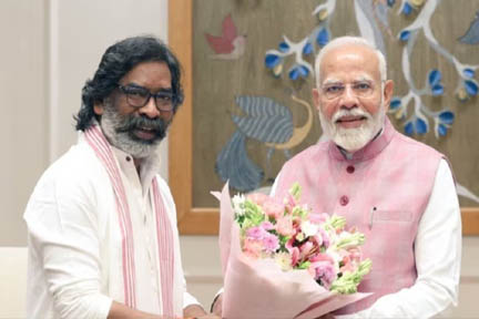 नयी दिल्ली. झारखंड के कार्यवाहक मुख्यमंत्री हेमंत सोरेन ने मंगलवार को प्रधानमंत्री नरेन्द्र मोदी से मुलाकात की. राज्य में सत्तारूढ़ गठबंधन के अभूतपूर्व ढंग से दूसरी बार सत्ता में आने के बाद राष्ट्रीय राजधानी की उनकी यह पहली यात्रा है. प्रधानमंत्री कार्यालय ने सोरेन और मोदी के बीच मुलाकात की तस्वीरें पोस्ट कीं. झारखंड मुक्ति मोर्चा (झामुमो) ने कांग्रेस, राष्ट्रीय जनता दल (राजद) और वाम दलों वाले ‘इंडिया’गठबंधन का नेतृत्व करते हुए भाजपा नीत गठबंधन पर बड़ी जीत हासिल की.