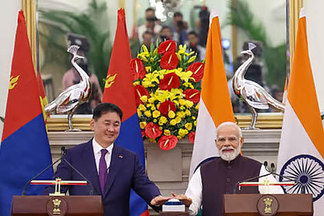 नयी दिल्ली. प्रधानमंत्री नरेन्द्र मोदी ने मंगोलिया के राष्ट्रपति हुरेलसुख उखना के साथ व्यापक वार्ता के बाद मंगलवार को कहा कि मंगोलिया के विकास में भारत एक “विश्वसनीय साझेदार” रहा है और दोनों देश एक स्वतंत्र, खुले और नियम-आधारित हिंद-प्रशांत क्षेत्र का समर्थन करते हैं.
