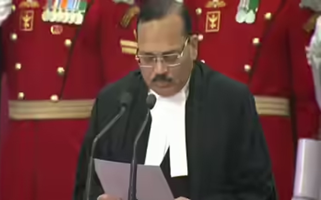 नयी दिल्ली: न्यायमूर्ति सूर्यकांत ने सोमवार को भारत के 53वें प्रधान न्यायाधीश के तौर पर शपथ ली। राष्ट्रपति द्रौपदी मुर्मू ने राष्ट्रपति भवन में एक समारोह में न्यायमूर्ति सूर्यकांत को शपथ दिलाई और उन्होंने ंिहदी में शपथ ली। न्यायमूर्ति सूर्यकांत को न्यायमूर्ति बी आर गवई के स्थान पर न्यायपालिका के सर्वोच्च पद पर नियुक्त किया गया है। न्यायमूर्ति गवई रविवार को सेवानिवृत्त हो गए।