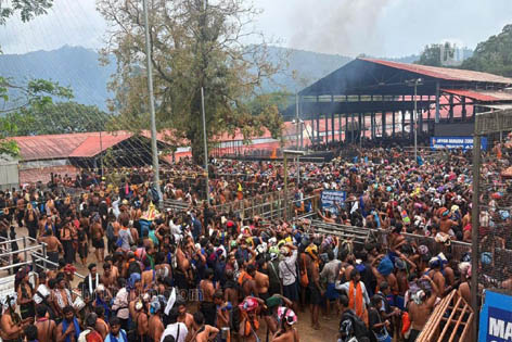 पत्तनमथिट्ठा. केरल के सबरीमला में भगवान अयप्पा मंदिर के पट वार्षिक ‘मंडला-मकरविलक्कु’ तीर्थयात्रा सत्र के लिए खोले जाने के 48 घंटे के भीतर लगभग दो लाख तीर्थयात्री वहां पहुंच गए, जिससे त्रावणकोर देवस्वोम बोर्ड (टीडीबी) और पुलिस को भीड़ प्रबंधन में काफी मशक्कत करनी पड़ रही है.