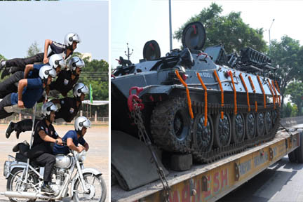 साइंस कॉलेज मैदान में सैनिको ने डेयर डेविल स्टंट और खुखरी डांस और मिलेट्री बैंड का पूर्वाभ्यास किया.