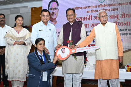 रायपुर. “हम श्रमिक परिवारों के सशक्तिकरण और उत्थान के लिए समर्पित भाव से कार्य कर रहे हैं. आपका स्नेह और सहयोग ही हमारी सबसे बड़ी ताकत है और हम सब मिलकर एक विकसित, समृद्ध और सशक्त छत्तीसगढ़ के संकल्प को साकार करेंगे.” मुख्यमंत्री विष्णु देव साय आज राजधानी रायपुर के न्यू सर्किट हाउस में आयोजित मुख्यमंत्री नोनी बाबू मेधावी शिक्षा सहायता योजना के तहत कक्षा दसवीं और बारहवीं के टॉप 10 में स्थान पाने वाले पंजीकृत श्रमिकों के 31 मेधावी बच्चों को दो-दो लाख रुपए की प्रोत्साहन राशि का वितरण कर कार्यक्रम को संबोधित कर रहे थे. इस दौरान मुख्यमंत्री ने छत्तीसगढ़ भवन एवं अन्य सन्निर्माण कर्मकार कल्याण मंडल में पंजीकृत राज्य के 38 हजार 200 निर्माण श्रमिकों को विभिन्न योजनाओं के तहत 19.71 करोड़ रूपए से ज्यादा की सहायता राशि सीधे उनके बैंक खातों में हस्तांतरित की.