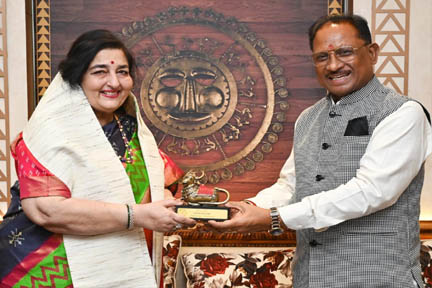रायपुर. मुख्यमंत्री विष्णु देव साय से आज छत्तीसगढ़ विधानसभा स्थित उनके कक्ष में पद्मश्री अनुराधा पौडवाल ने सौजन्य भेंट की. मुख्यमंत्री साय ने छत्तीसगढ़ आगमन पर शॉल और बेल मेटल की नन्दी भेंट कर उनका स्वागत और अभिनंदन किया. मुख्यमंत्री साय और पद्मश्री अनुराधा पौडवाल के मध्य छत्तीसगढ़ की लोककला, गीत-संगीत और संस्कृति को लेकर विस्तृत चर्चा हुई. इस अवसर पर विधायक और पद्म अनुज शर्मा उपस्थित थे.