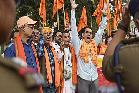 कोलकाता/नयी दिल्ली. पड़ोसी देश बांग्लादेश में अल्पसंख्यक समुदाय से जुड़े एक व्यक्ति की हत्या के विरोध में बुधवार को पश्चिम बंगाल में भारत-बांग्लादेश सीमा के कई भूमि पत्तनों पर एक हिंदू समर्थक संगठन के सदस्यों ने प्रदर्शन किए. हावड़ा जिले में प्रदर्शन के दौरान पुलिस और भारतीय जनता पार्टी (भाजपा) समर्थकों के बीच झड़प भी हुई.