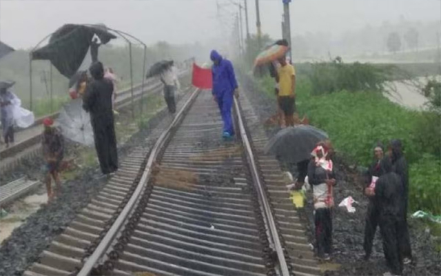 बलिया: बलिया जिले में पिछले 24 घंटों में हुई भारी बारिश के कारण बलिया-छपरा रेलखंड पर मिट्टी के कटाव के चलते रेल यातायात बाधित हो गया है। राजकीय रेलवे पुलिस (जीआरपी) ने शनिवार को यह जानकारी दी। जीआरपी थाना प्रभारी विवेकानंद यादव ने आज बताया कि पिछले 24 घंटों में हुई भारी बारिश के कारण सहतवार और बांसडीह रेलवे स्टेशनों के बीच और रेवती व दल छपरा के बीच रेलवे लाइन पर एक पेड़ गिर गया था। गिरे हुए पेड़ को हटाने के बाद रेल यातायात बहाल कर दिया गया।