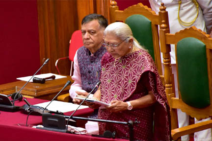 लखनऊ. उत्तर प्रदेश की राज्यपाल आनंदीबेन पटेल ने मंगलवार को बजट सत्र के पहले दिन विधानमंडल के दोनों सदनों को एक साथ संबोधित करते हुए कहा कि मेरी सरकार में अब तक कोई दंगा या जातीय संघर्ष की घटना नहीं हुई. सदन के पटल पर रखे गये राज्यपाल के अभिभाषण के अनुसार पटेल ने कहा, ”विभिन्न महत्वपूर्ण त्योहारों मेलों, जुलूसों, शोभा यात्राओं व धार्मिक आयोजनों के साथ साथ विभिन्न निर्वाचनों को शांतिपूर्ण ढंग से सकुशल सम्पन्न कराये जाने में सफलता प्राप्त हुई है…. मेरी सरकार में अब तक कोई सांप्रदायिक दंगा या जातिगत संघर्ष की घटना नहीं हुई है.” दरअसल, राज्य के मुख्य विपक्षी दल समाजवादी पार्टी (सपा) के सदस्यों के भारी विरोध और हंगामे के बीच राज्यपाल ने सिर्फ आठ मिनट 35 सेकंड में अपना 40 पेज का अभिभाषण समाप्त कर दिया. बाद में उनके अभिभाषण की पुस्तिका सदस्यों में वितरित की गयी.