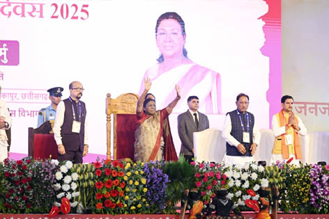 रायपुर. राष्ट्रपति द्रौपदी मुर्मु जनजातीय गौरव दिवस 2025 के उपलक्ष्य में सरगुजा जिले में 20 नवम्बर को पीजी कॉलेज ग्राउण्ड में आयोजित कार्यक्रम में मुख्य अतिथि के रूप में शामिल हुईं. कार्यक्रम में राज्यपाल रमेन डेका, मुख्यमंत्री विष्णुदेव साय, राज्यमंत्री जनजातीय कार्य मंत्रालय भारत सरकार दुर्गा दास उईके, राज्यमंत्री आवास एवं शहरी मंत्रालय भारत सरकार तोखन साहू, आदिम जाति विकास विभाग कृषि विकास एवं किसान कल्याण विभाग मंत्री रामविचार नेताम, प्रभारी मंत्री जिला सरगुजा एवं वित्त वाणिज्यिक कर विभाग मंत्री ओमप्रकाश चौधरी, पर्यटन संस्कृति एवं धर्मस्व विभाग मंत्री राजेश अग्रवाल, वन एवं जलवायु परिवर्तन परिवहन सहकारिता एवं संसदीय कार्य मंत्री केदार कश्यप, लोक स्वास्थ्य और परिवार कल्याण चिकित्सा शिक्षा पिछड़ा वर्ग एवं अल्पसंख्यक विकास 20 सूत्रीय कार्यक्रम क्रियान्वयन मंत्री श्याम बिहारी जायसवाल, महिला एवं बाल विकास समाज कल्याण विभाग मंत्री लक्ष्मी राजवाड़े, सरगुजा सांसद चिंतामणी महाराज, उत्तर रायपुर विधायक पुरंदर मिश्रा, जगदलपुर विधायक किरण सिंह देव, महापौर अम्बिकापुर मंजुषा भगत भी उपस्थित रहे. कार्यक्रम स्थल में जनजातीय संस्कृति, लोक कला एवं शिल्प, आभूषण एवं वस्त्र, पूजा-पाठ, संस्कार, व्यंजन, वाद्ययंत्रों, जड़ी-बूटियों आदि को प्रदर्शित करने हेतु प्रदर्शनियां लगाई गई. राष्ट्रपति मुर्मु ने प्रदर्शनियों का अवलोकन किया.