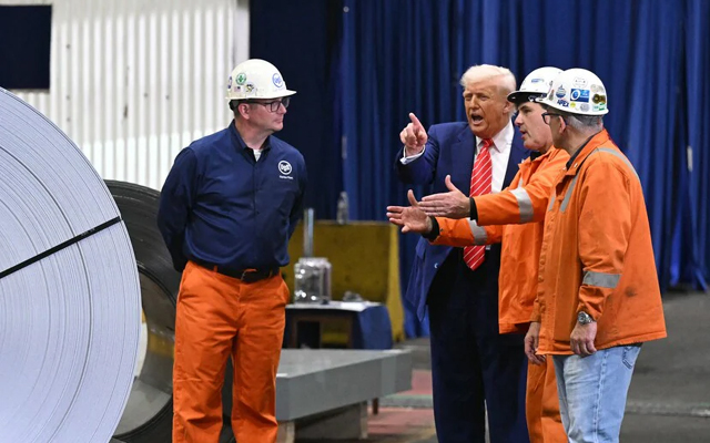वेस्ट मिफ्लिन: अमेरिकी राष्ट्रपति डोनाल्ड ट्रंप ने शुक्रवार को पेन्सिल्वेनिया के इस्पात र्किमयों से कहा कि वह उनके उद्योग की रक्षा के लिए इस्पात आयात पर शुल्क को दोगुना करके 50 प्रतिशत कर रहे हैं। यह एक नाटकीय वृद्धि है, जो आवास, वाहन और अन्य सामान बनाने के लिए उपयोग की जाने वाली धातु की कीमतों को और बढ़ा सकती है।